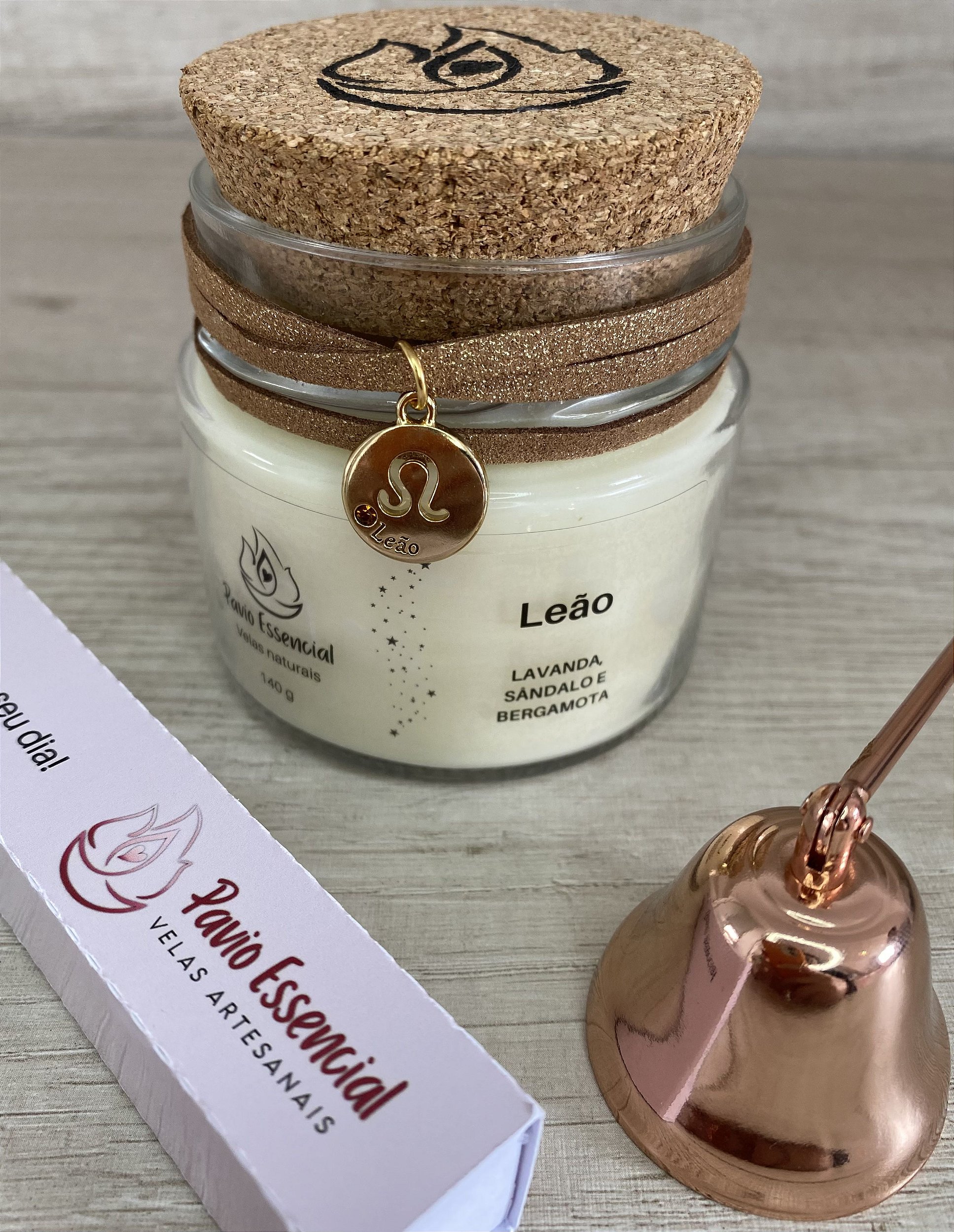 O signo de Leão é regido pelo Sol, o centro do sistema e o astro mais importante, está relacionado a vitalidade e a energia. Vaidade, bom humor e facilidade em liderar fazem parte da personalidade de quem tem o sol no signo de Leão. Carismáticos e naturalmente destacáveis, os leoninos tendem a ser bem extrovertidos. São generosos, fortes destemidos e leais. Porém, o excesso de autoestima, pode torná-los autoritários e intolerantes. Por isso, os óleos essenciais de Lavanda e bergamota acalmam e trazem a tolerância. O sândalo aterra a energia, equilibrando as emoções e a personalidade forte dos leoninos. Quantidade: 140 g. Frasco de vidro com tampa de cortiça. Composição: Ceras Vegetais de coco, palma e arroz, pavio de madeira, óleos essenciais de Lavanda, Bergamota e Sândalo.